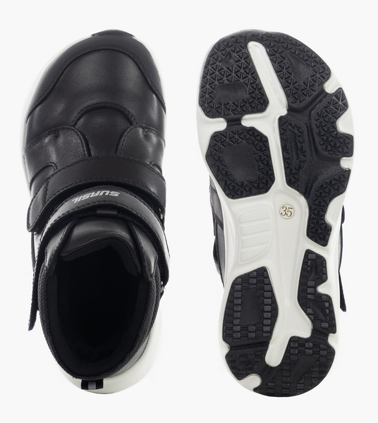 Такая обувь снижает риск деформаций: пальчики на стопе не сдавливаются, кровоток не нарушается, снимается риск вросшего ногтя и предотвращаются негативные изменения в стопах. Стильный спорт-кэжуал дизайн, байковая подкладка и кожаный верх с текстильными дышащими вставками каждая деталь делает эту обувь идеальной для прогулок в прохладный сезон. Плотный задник удерживает стопу от завала, анатомическая стелька поддерживает своды стопы. Легкая подошва из вспененного материала ЭВА с перекатом амортизирует стопы и обеспечивает легкость ходьбы. Стопы и суставы разгружаются, а ребенок может дольше активничать на улице, не уставая. Резиновые вставки на протекторе защищают ножки от скольжения при движении.