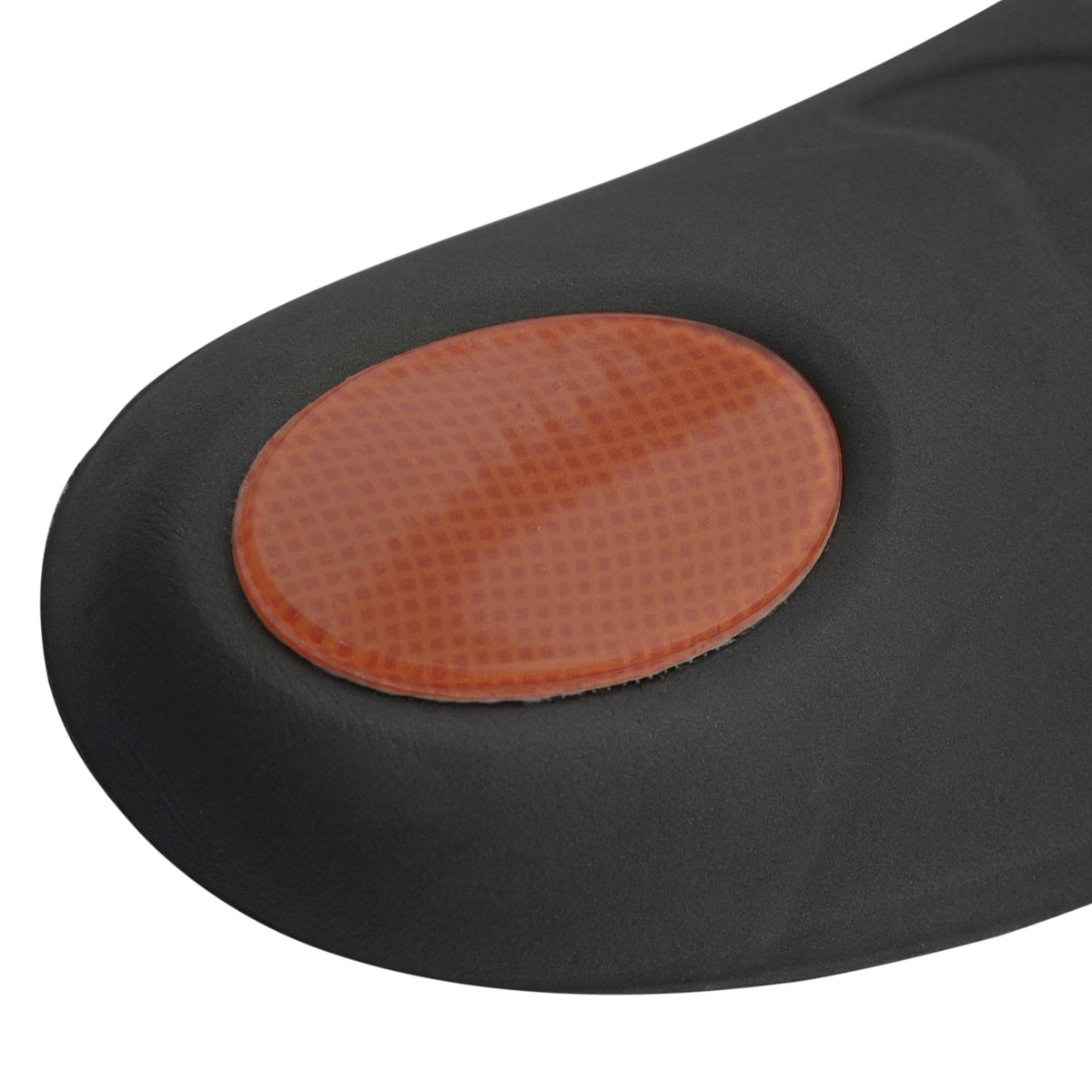 Продуманная конструкция ортопедической стельки и инновационные материалы защищают от травм, повышают эффективность тренировок, позволяют добиться лучших результатов в спорте без компромиссов со здоровьем ног и позвоночника. Двойной пяточный амортизатор из геля и вязко-эластичной пены, а также амортизирующая вставка в переднем отделе эффективно смягчают удары. Покрытие из полиэстера, полиуретановая пена с открытыми ячейками и антибактериальный слой способствуют поддержанию правильного микроклимата в обуви даже при интенсивных тренировках. Вязко-эластичная пена с эффектом памяти формы и противоскользящий рисунок наружной части стелек обеспечивают дополнительное удобство при использовании.